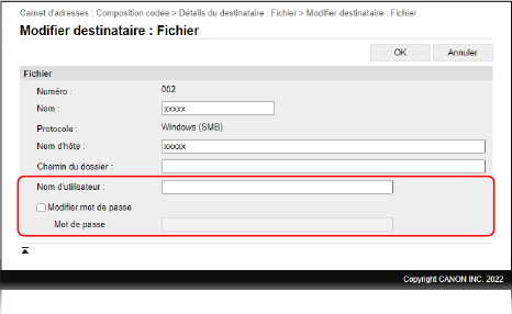 Définition des restrictions d'accès à un dossier partagé (IU distante) (MF754Cdw / MF752Cdw / MF465dw / MF463dw / MF461dw)