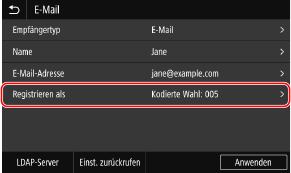Der Bildschirm wechselt zu dem Bildschirm für die Registrierung des ausgewählten Empfängers.