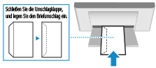 Hier wird beschrieben, wie Sie Briefumschläge korrekt einlegen und darauf drucken.