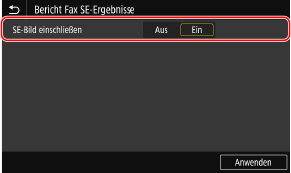 Wenn Sie einen Teil des übertragenen Originals im Übertragungsergebnisbericht einschließen möchten, wählen Sie <Ein> für <SE-Bild einschließen> aus.