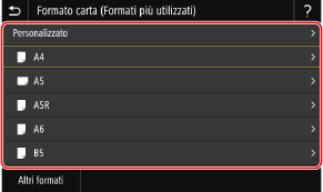 Se il formato della carta caricata non è visualizzato, selezionare <Altri formati>.