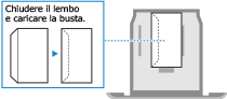 Caricare le buste in modo che il bordo con la linguetta sia rivolto verso il lato sinistro, con il lato anteriore (lato stampato) rivolto verso l’alto.