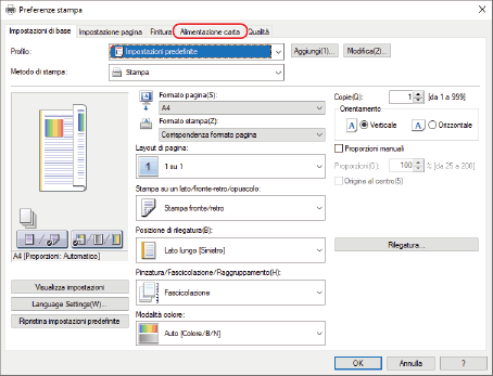 Fare clic su [Alimentazione carta] nella finestra delle impostazioni di stampa del driver della stampante.