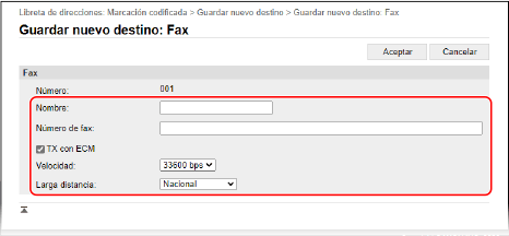 Para registrar o editar un destino de fax,