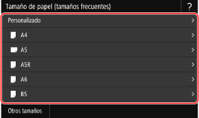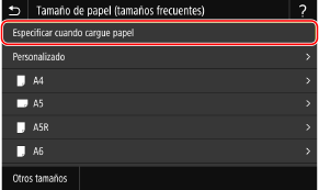 Si no aparece el tamaño de papel cargado, seleccione <Otros tamaños>.