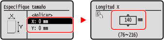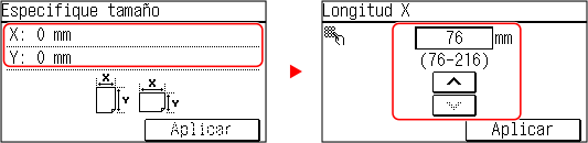 Seleccione <X> o <Y>, e introduzca la longitud de cada lado.