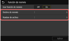 Seleccione <On> en <Usar función de reenvío>.