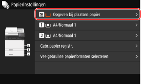 Als het papierformaatscherm niet wordt weergegeven, zelfs niet als er papier in de multifunctionele lade is geplaatst,