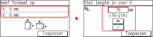 Geef de lengte van de <X>-kant en <Y>-kant op.