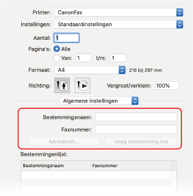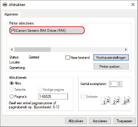 Selecteer in het printscherm het faxstuurprogramma van de machine.