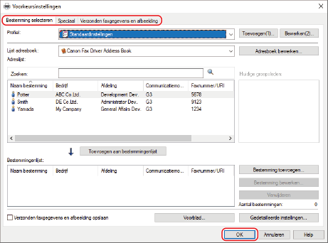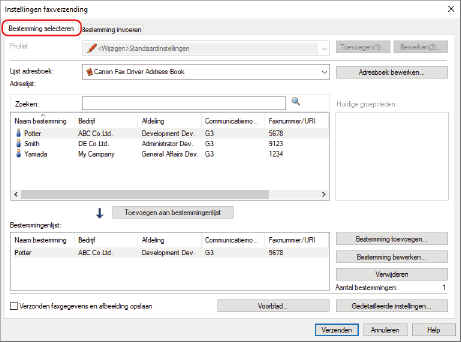 Selecteer vanuit [Lijst adresboek] een adresboek.