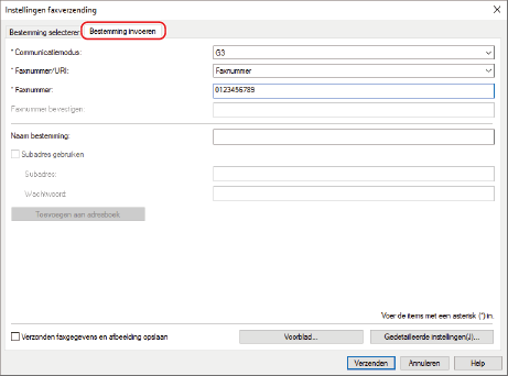 Als u een groep als bestemming toevoegt, wordt de nummerset met de hoogste prioriteit voor de bestemming weergegeven. Stel het nummer vanuit [Wijzig]