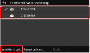 Selecteer de bestemmingen die u wilt verwijderen en selecteer <Verwijder vn best.>.