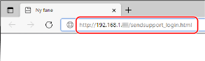 Skriv inn "http://<maskinens IP-adresse>/sendsupport_login.html" i adressefeltet i nettleseren, og trykk på [ENTER]-tasten på tastaturet.