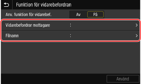 Välj <På> i <Anv. funktion för vidarebef.>.