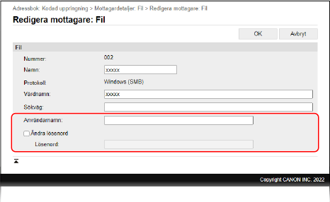 Ange behörighet till den delade mappen (fjärranvändargränssnittet) (MF754Cdw / MF752Cdw / MF465dw / MF463dw / MF461dw)