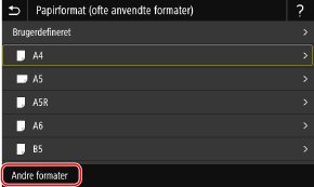 Hvis papirformatet for det ilagte papir ikke vises, skal du vælge <Andre formater>.