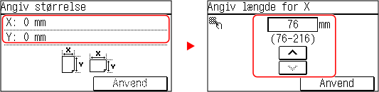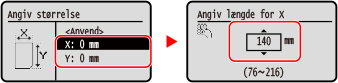 Vælg <X> eller <Y>, og indtast længden af hver side.