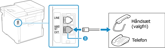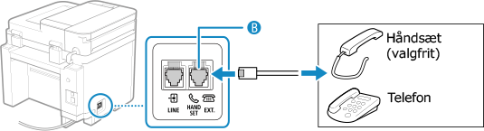 Ved tilslutning af en ekstern telefon eller et håndsæt (ekstraudstyr),