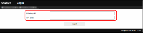 Indtast det registrerede [Afdelings-ID] og [PIN-kode], og klik derefter på [Login].