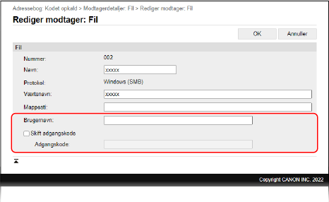 Indstilling af adgangsbegrænsninger for en delt mappe (Fjern-UI) (MF754Cdw / MF752Cdw / MF465dw / MF463dw / MF461dw)