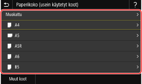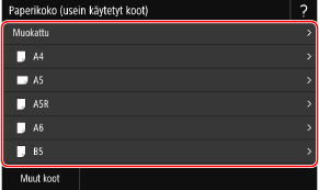 Jos lisätyn paperin paperikokoa ei näytetä, valitse <Muut koot>.