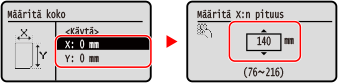 Valitse <X> tai <Y> ja syötä kunkin sivun pituus.