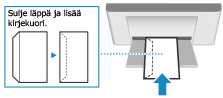 Lisää kirjekuoret niin, että läpän puoleinen sivu on vasemmalla puolella ja etupuoli (tulostettava puoli) ylöspäin.