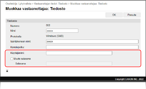 Jaetun kansion käyttörajoitusten asettaminen (etäkäyttöliittymiä) (MF754Cdw / MF752Cdw / MF465dw / MF463dw / MF461dw)