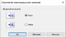 Napsauta [Dokum. skannaussuunnan asetukset] ja aseta syöttölaitteeseen asetetun alkuperäisen skannaussuunta. Valotuslasille asetetun alkuperäisen skannaussuuntaa ei voi vaihtaa.