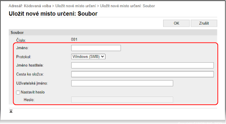 [Cesta ke složce] a [Jméno hostitele] se nemusí zobrazit správně nebo příslušný odkaz nemusí být použitelný.