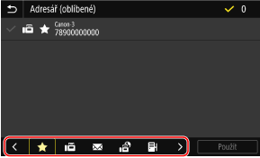Pokud registrujete často používané umístění v <Oblíbená>, můžete jej snadno vybrat v adresáři.