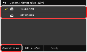 Pokud byla předchozí položka v protokolu odeslána do více míst určení, zobrazí se v protokolu pouze první místo, ale výběr položky určí všechna místa.