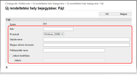 Megosztott mappa regisztrálása a számítógépen a címjegyzékben (Távoli felhasználói felület)