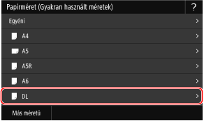 Válassza ki a betöltött borítékok méretét a [Papírméret] menüben.