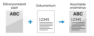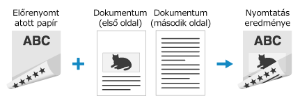 <Menü>  <Funkcióbeállítások>  <Közös>  <Papíradagolási beállítások>  <Papíradagolási mód váltása>  Válassza ki azt a papírforrást, ahová előre nyomtatott, logóval ellátott papír van betéve  <Nyomtatott oldal prioritása>