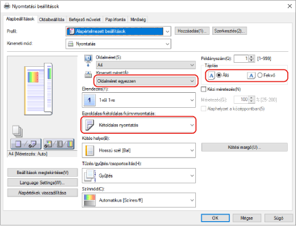 Válassza a [Egyoldalas nyomtatás] vagy [Kétoldalas nyomtatás] értéket a [Egyoldalas/kétoldalas/könyvnyomtatás] beállításnál.