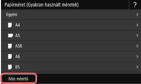 Ha a behelyezett papír mérete nem jelenik meg, válassza ki a <Más méretű> lehetőséget.