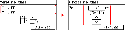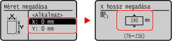 Válassza ki az <X> vagy <Y> lehetőséget, majd adja meg az egyes oldalak hosszát.