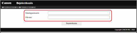 Válassza a [Rendszerkezelő mód], lehetőséget, adja meg a [Rendszerkezelő ID] és a [Rendszerkezelő PIN-kódja] értékét, majd válassza a [Bejelentkezés] lehetőséget.