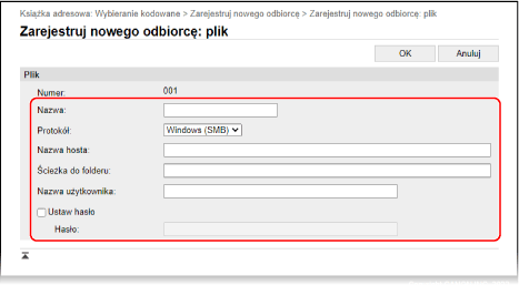 Rejestrowanie folderu współdzielonego na komputerze w Książce Adresowej (zdalny interfejs użytkownika)
