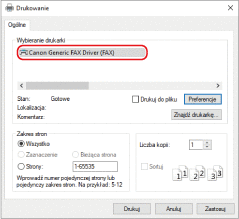 Na ekranie drukowania wybierz sterownik faksu urządzenia.