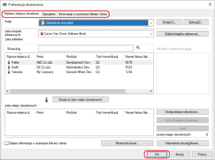 Użyte tutaj zrzuty z ekranu sterownika faksu mogą się różnić od tych na twoim ekranie, w zależności od systemu operacyjnego i wersji sterownika faksu.