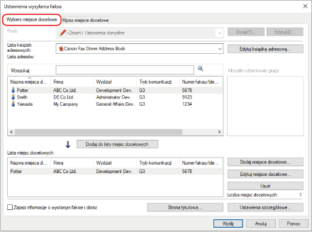 Podczas dodawania grupy jako miejsca docelowego, dla miejsca docelowego wyświetlany jest numer ustawiony z najwyższym priorytetem. Ustaw numer z [Edycja]