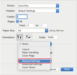 Wybierz panel [General Settings] z menu podręcznego okna dialogowego drukowania.