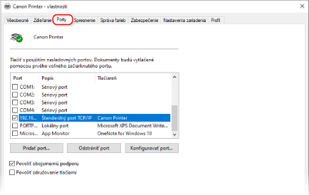 Ide o vstavaný port pre Windows. Ak zmeníte adresu IP zariadenia, zakaždým je potrebné pridať nový port. Túto možnosť vyberte, ak používate zariadenie v prostredí IPv6 alebo ak nemôžete pridať port MFNP.