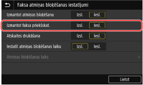 <Faksa atmiņas bloķēšanas iestatījumi>.