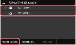 Ja faksa sūtīšanas laikā adresātu ievadāt tieši, šis adresāts netiek reģistrēts un nav redzams sūtīšanas žurnālā.