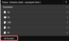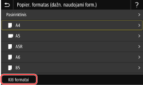 Jei nerodomas įdėto popieriaus formatas, pasirinkite <Kiti formatai>.