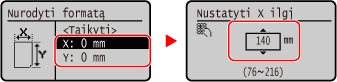 Jei įdėtas pasirinktinio formato popierius (MF754Cdw / MF752Cdw / MF465dw / MF463dw / MF461dw / MF275dw / MF272dw),